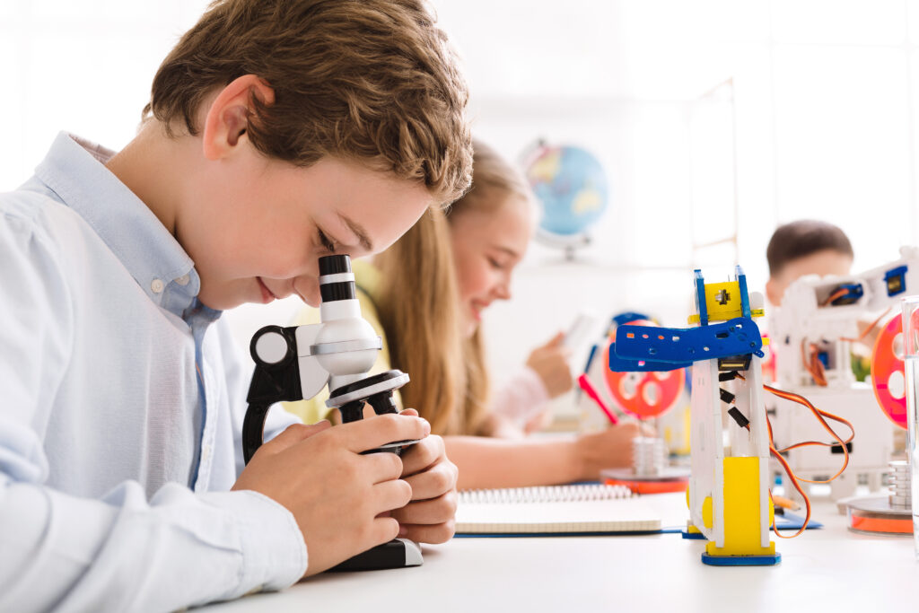 Farklı disiplinlerden kazanımları bir araya getiren STEM atölyelerimizde; üretime katkının uygulayarak öğrenilmesini hedefliyoruz. STEM atölyelerimizde çocuklarımızın eleştirsel düşünme ve problem çözme becerileri desteklenir.